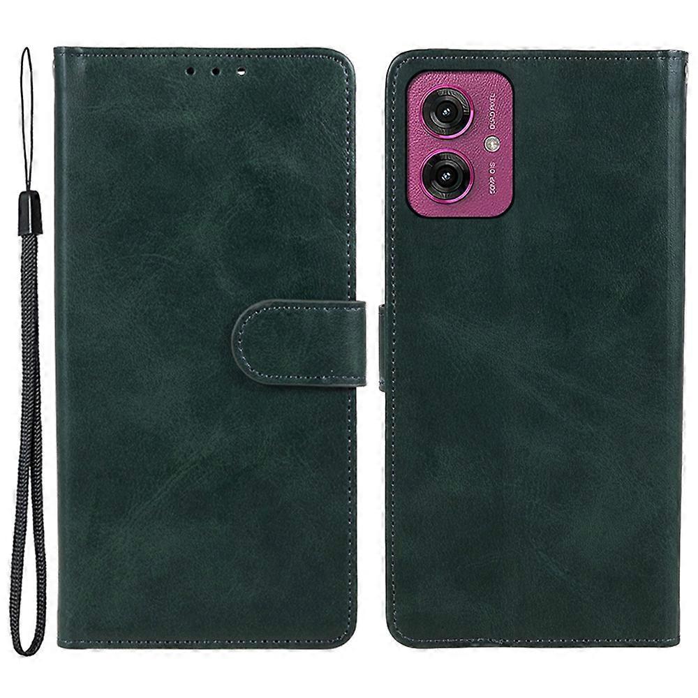 For Motorola Moto G55 5G Case PU Leather Wallet Protective Phone Cover Calf Texture - Midnight Green