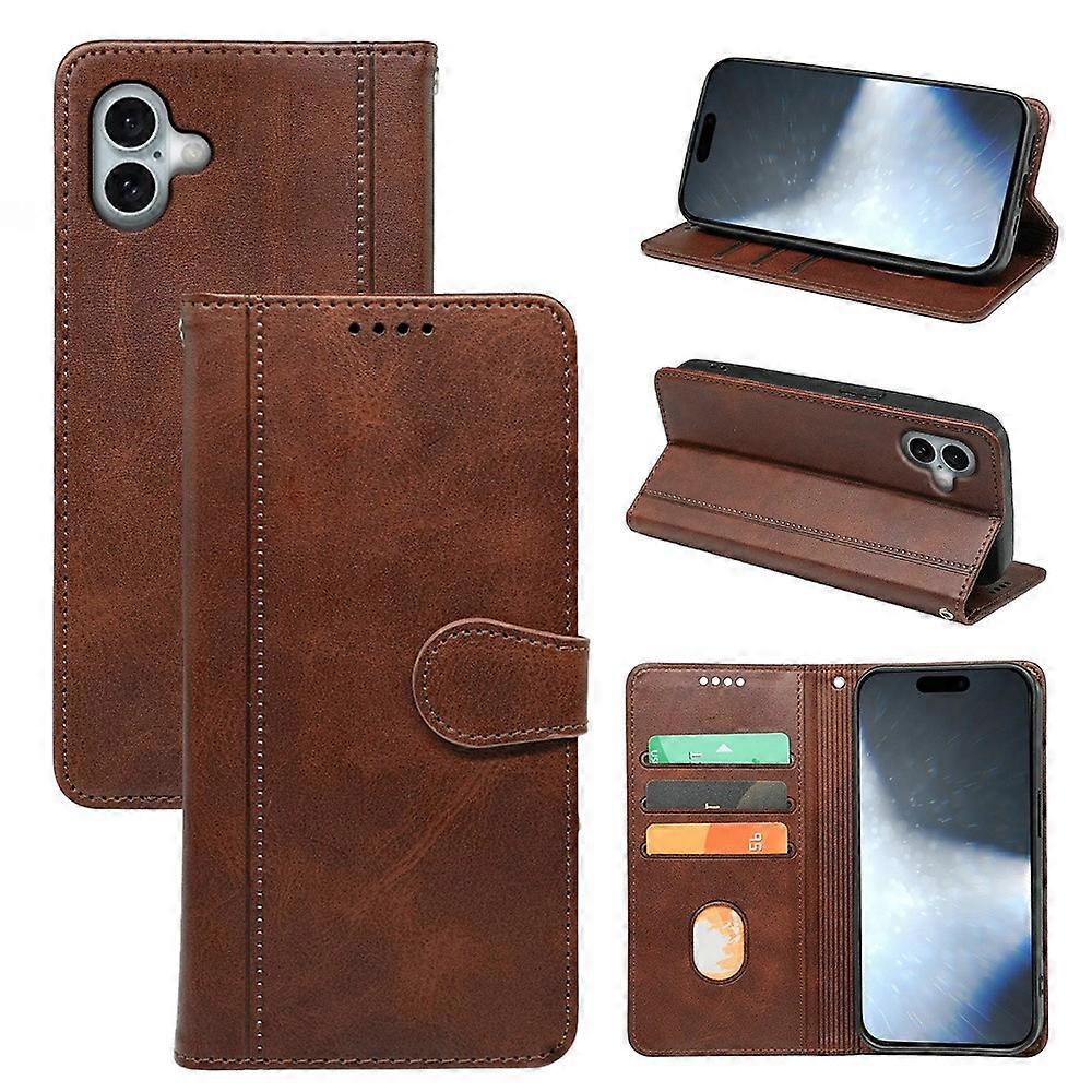 For iPhone 16 Case Calf Texture Leather Stand Book Style Phone Cover - Brown