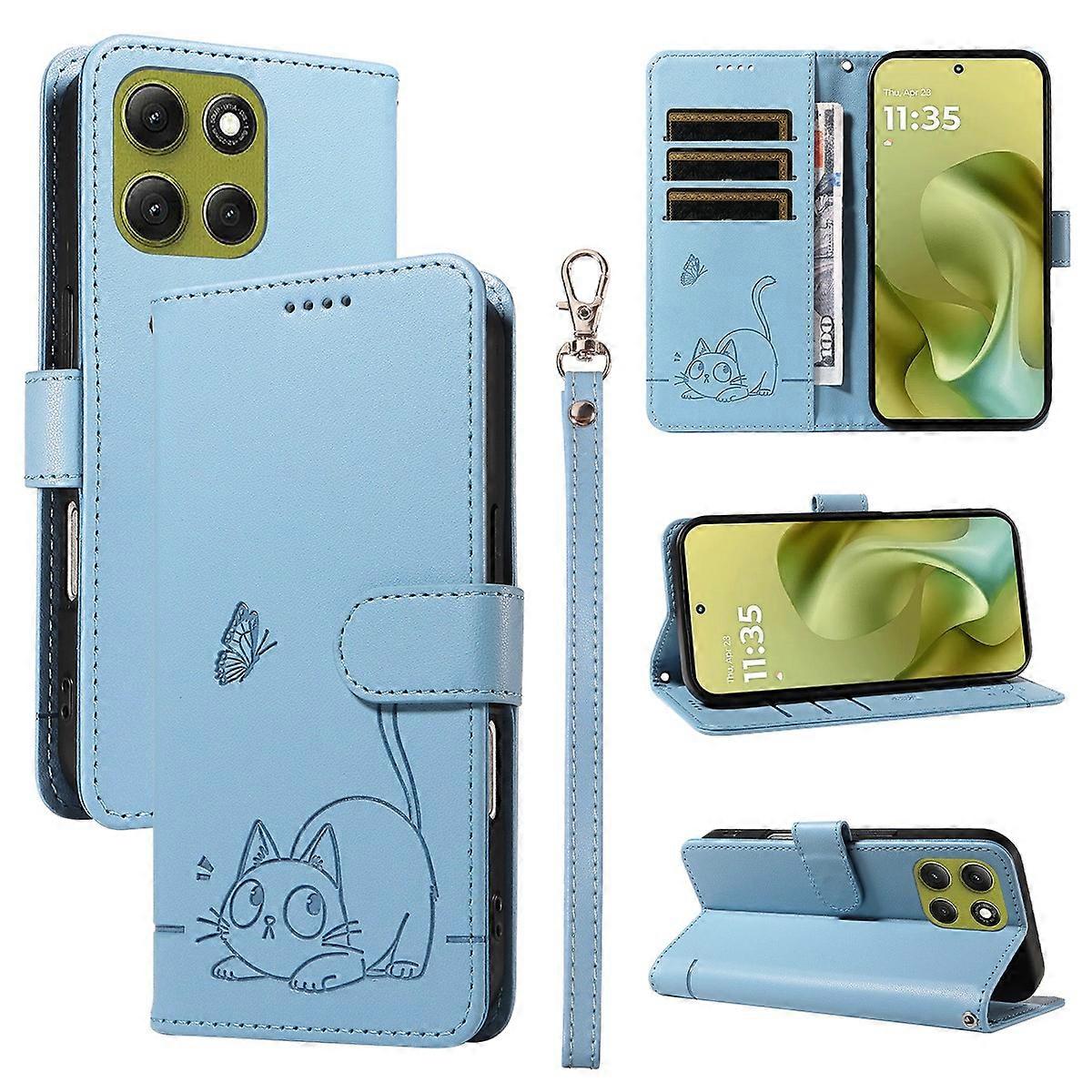 For Motorola Moto G86 5G G86 Power 5G Case Cat Pattern Imprint Leather Phone Cover with Wrist Strap