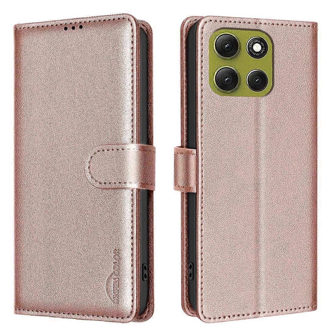 For Motorola Moto G86 5G Leather Case BINFEN COLOR BF32 Wallet RFID Blocking Phone Cover - Rose Gold