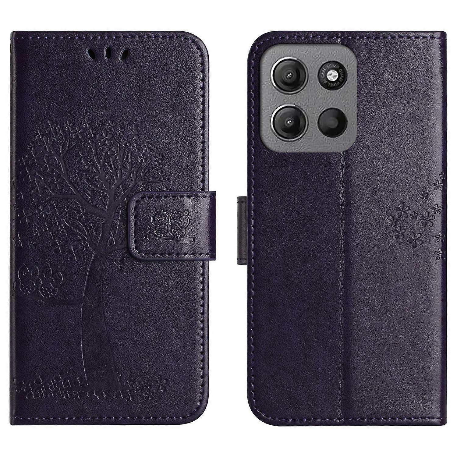For Motorola Moto G86 5G G86 Power 5G Case PU Leather Owl Tree Imprinted Wallet Phone Cover with Str