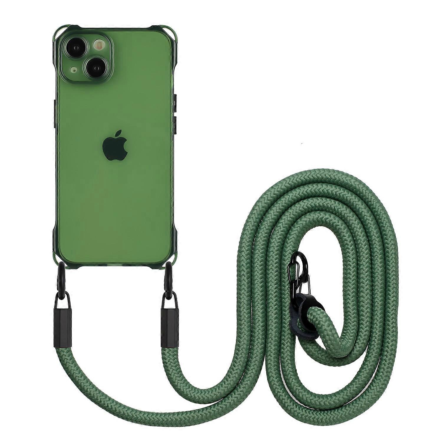 For iPhone 15 Slim-Fit Phone Cover Four Corners Anti-drop TPU Case with Hanging Rope - Army Green