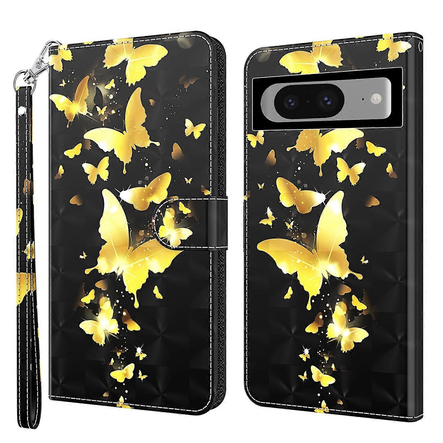 3D Pattern Printing Phone Case for Google Pixel 8 , Wallet Stand PU Leather Cover with Strap - Golde