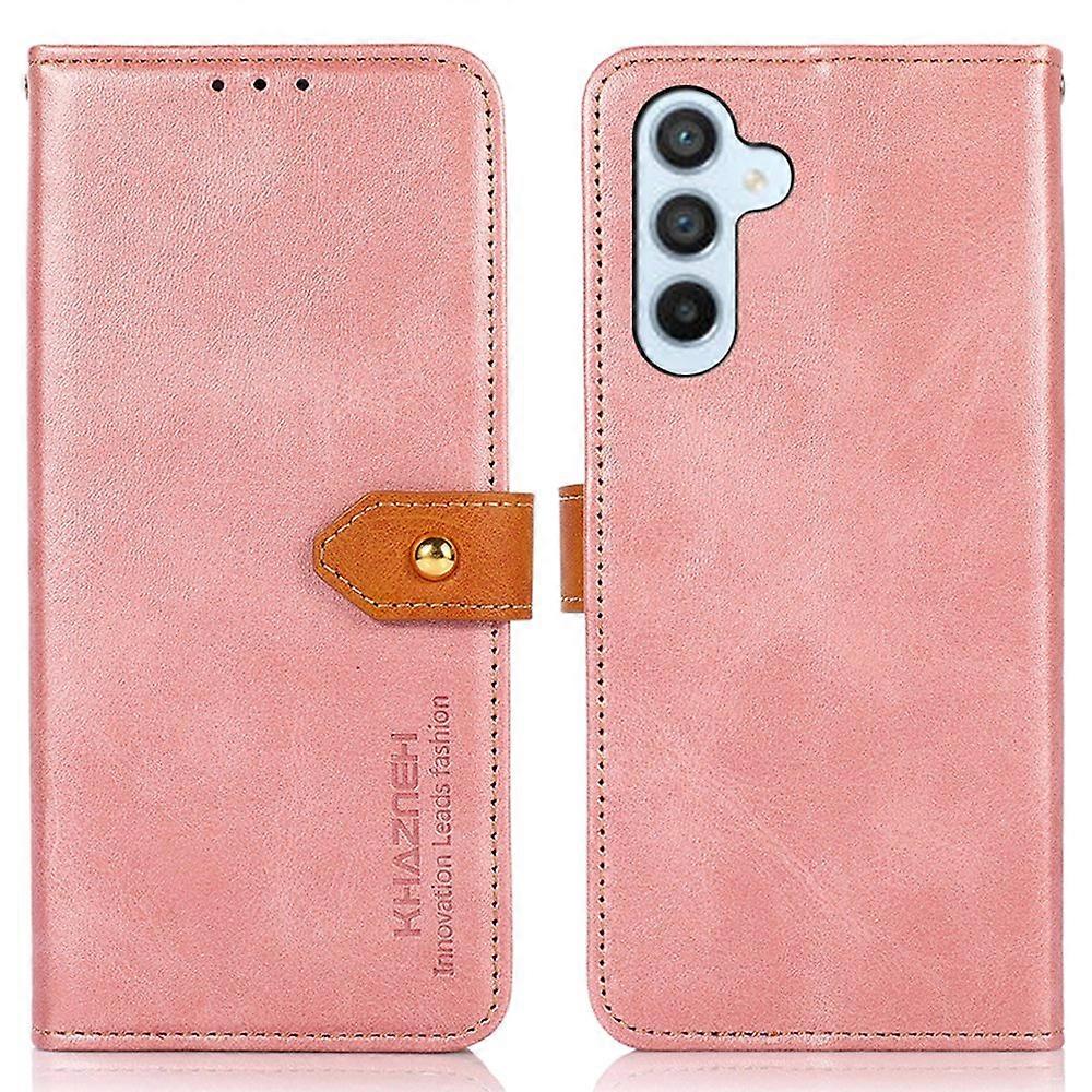 KHAZNEH For Samsung Galaxy S25 S24 Case Stand Wallet Cowhide Texture PU Leather Phone Cover - Rose G