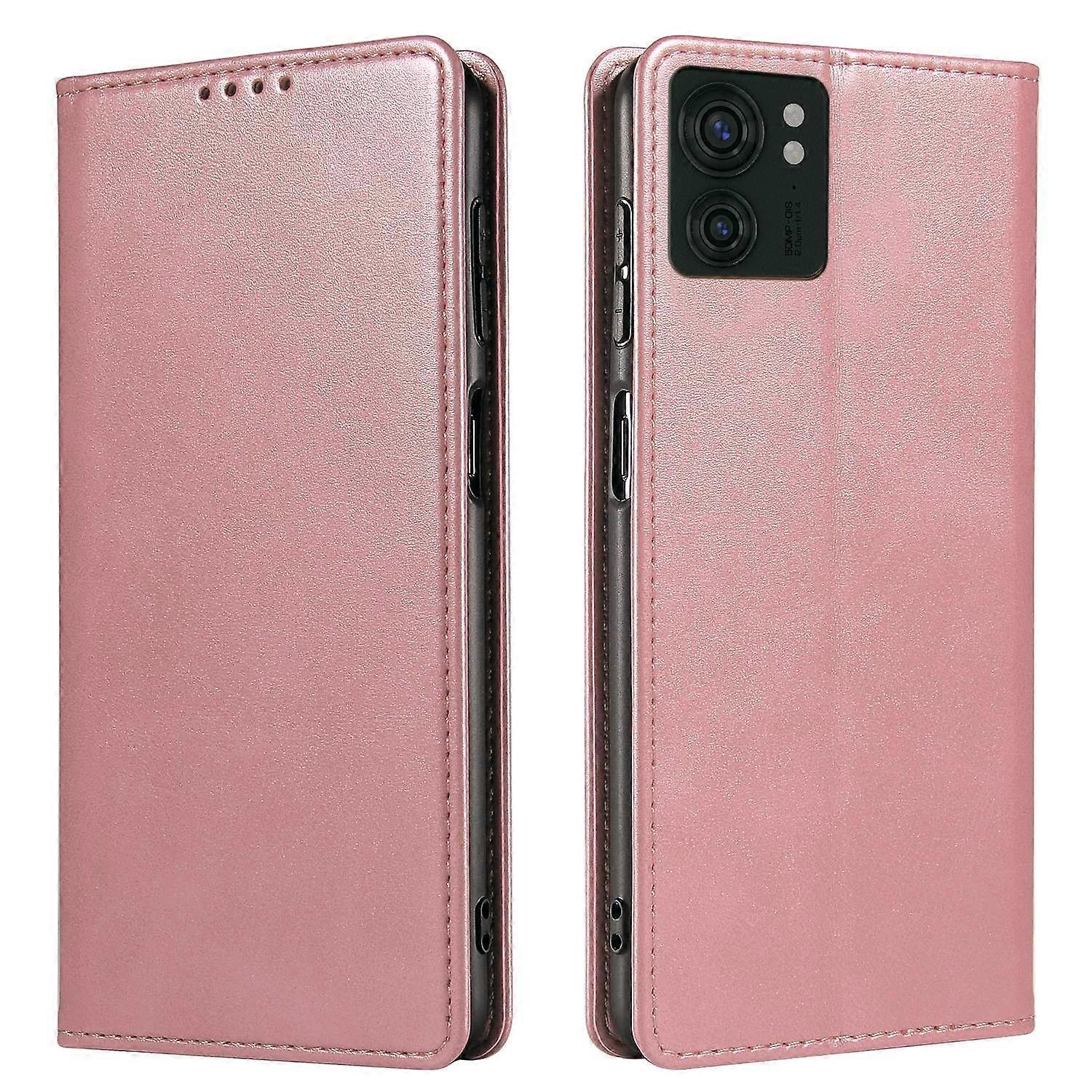 For Motorola Edge 40 5G PU Leather Stand Case Calf Texture Anti-drop Wallet Phone Cover - Rose Gold
