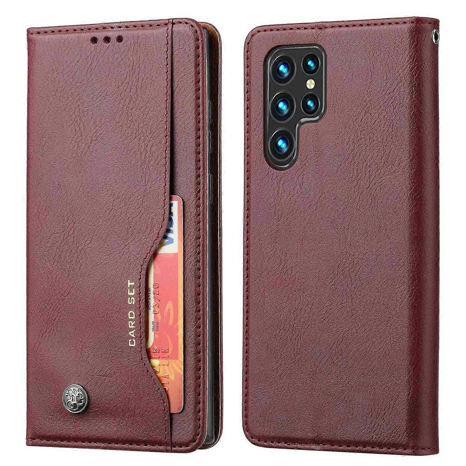 For Samsung Galaxy S23 Ultra Magnetic Auto-absorbed Phone Case Front Card Slot Design PU Leather Pho
