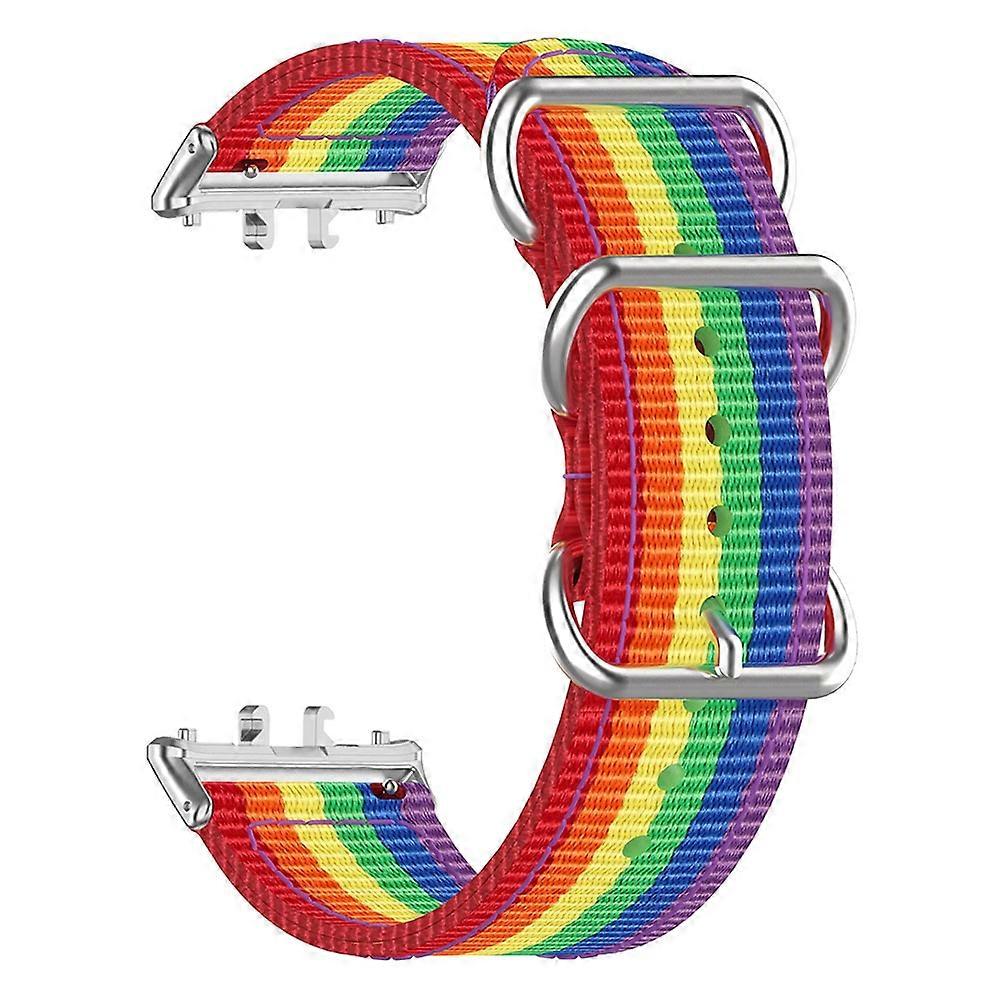 For Samsung Galaxy Fit3 SM-R390 Nylon Watch Strap Three Rings Replacement Wrist Band - Rainbow
