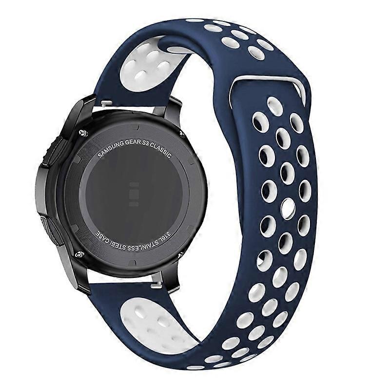 For Samsung Gear S3 Frontier S3 Classic 22mm Two-tone Soft Silicone Watch Band Wrist Strap - Blue Wh