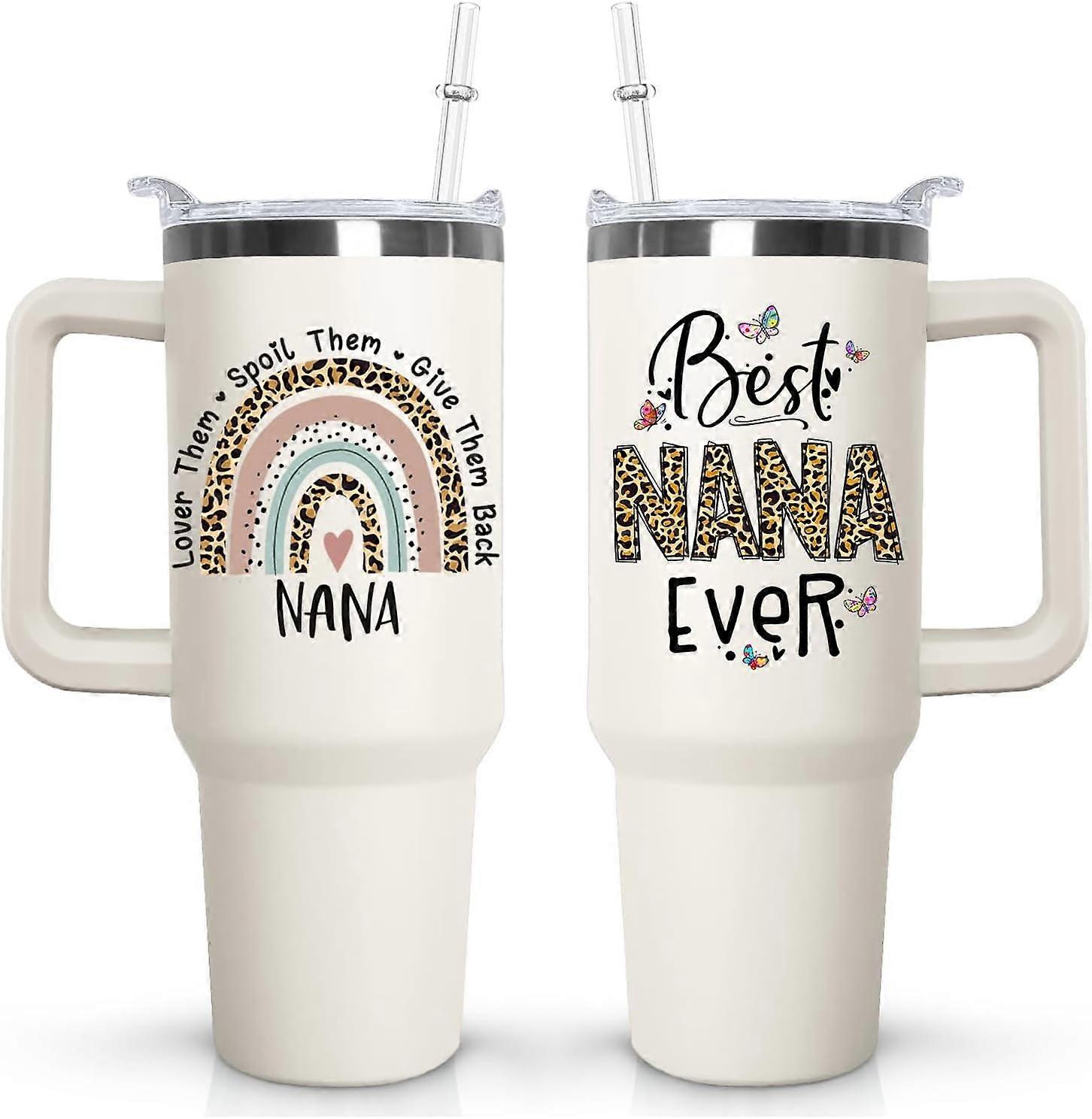 40 oz Nana Tumbler with handle Lid and Straw, Best Nana Ever Vacuum Insulated Travel Coffee Mug CupTumbler, Mothers Day Gifts for Grandmother