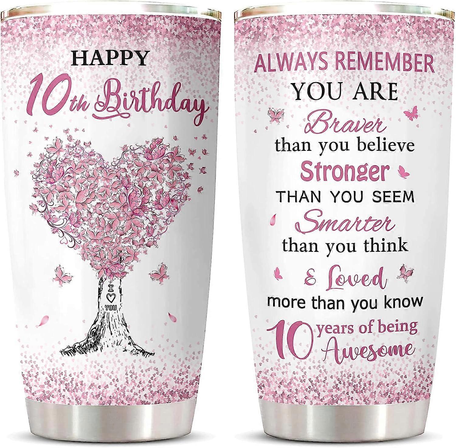 10 Year Old Girl Birthday Gifts Tumbler 20oz, Happy 10th Birthday Girl Cup, Compatible with Coffee & Tea