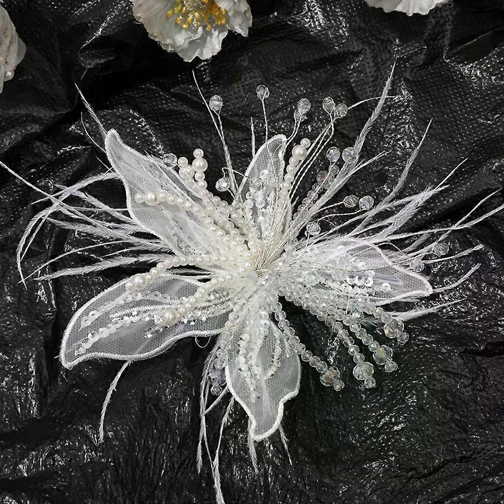 Feather Pearl 3D Organza Flower Patch Crystal Flower Lace Studded Patch Twisted Wire Handmade DIY Sewing Decals