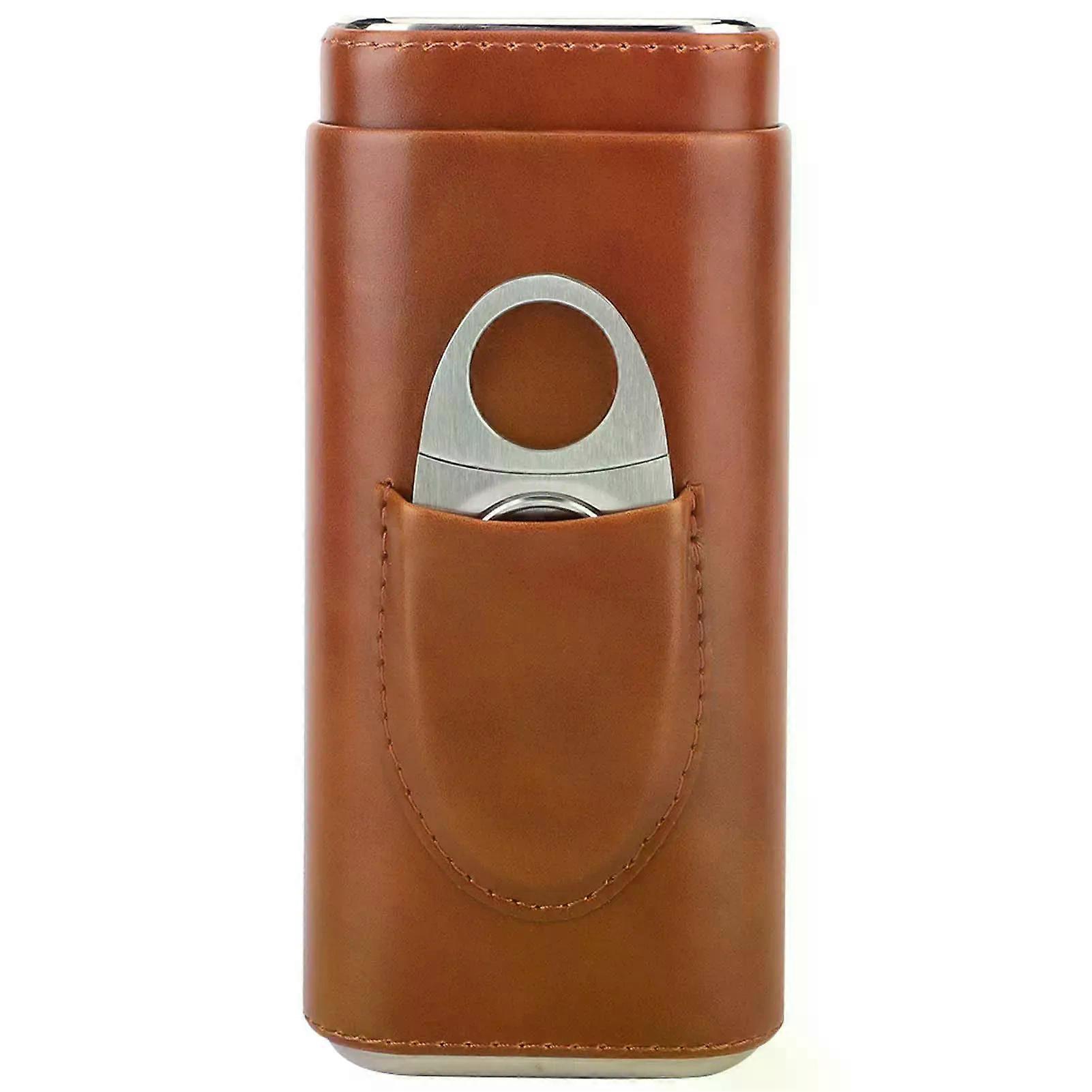 Portable Leather Cigar Case Cedar Wood Lined Cigar Humidor with Cutter (for 3 Cigars)