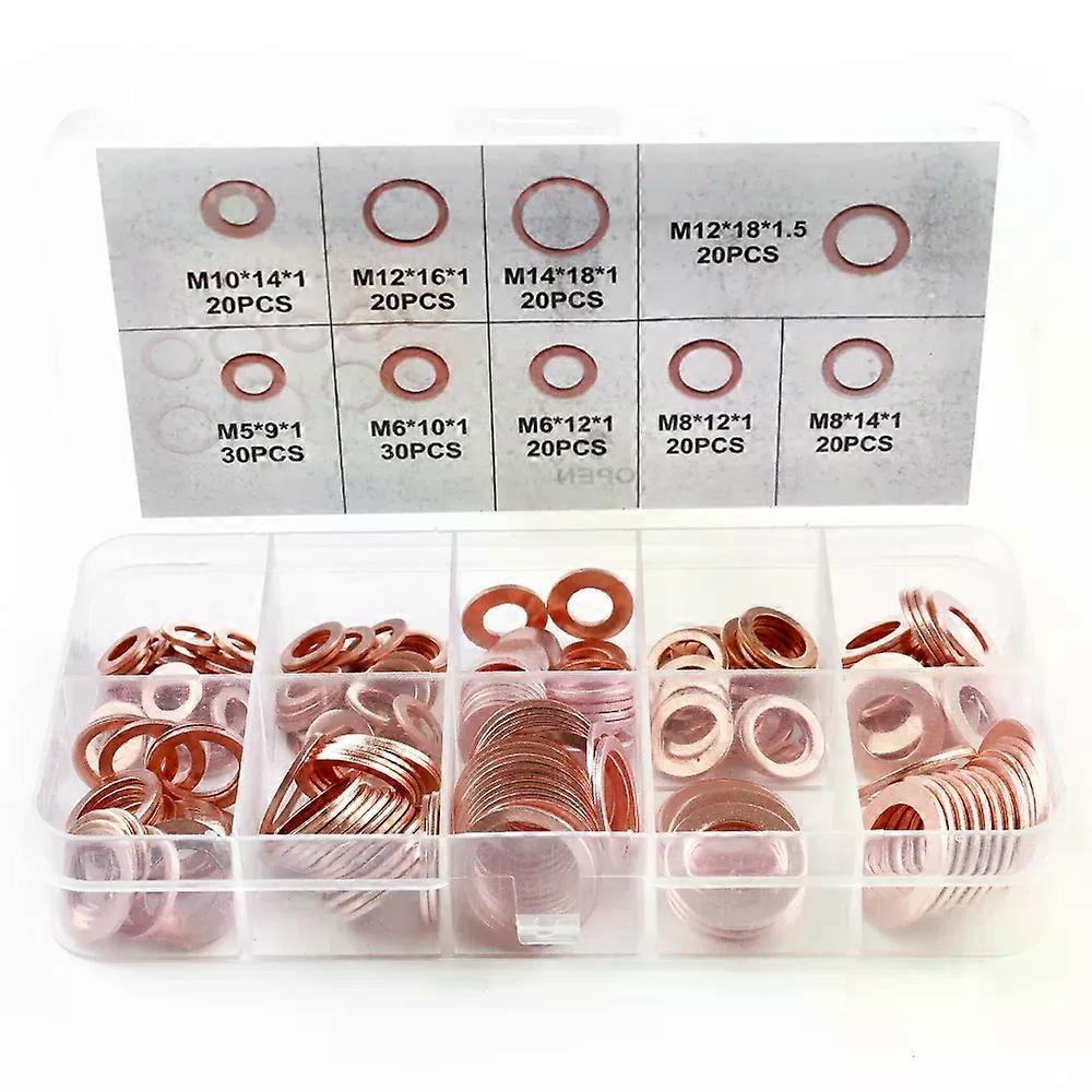 200 Pcs Copper Washer Sealing Gasket Flat Ring Seal Assortment Kit M4 M5 M6 M8 M10 M12 M14 For Sump Plugs