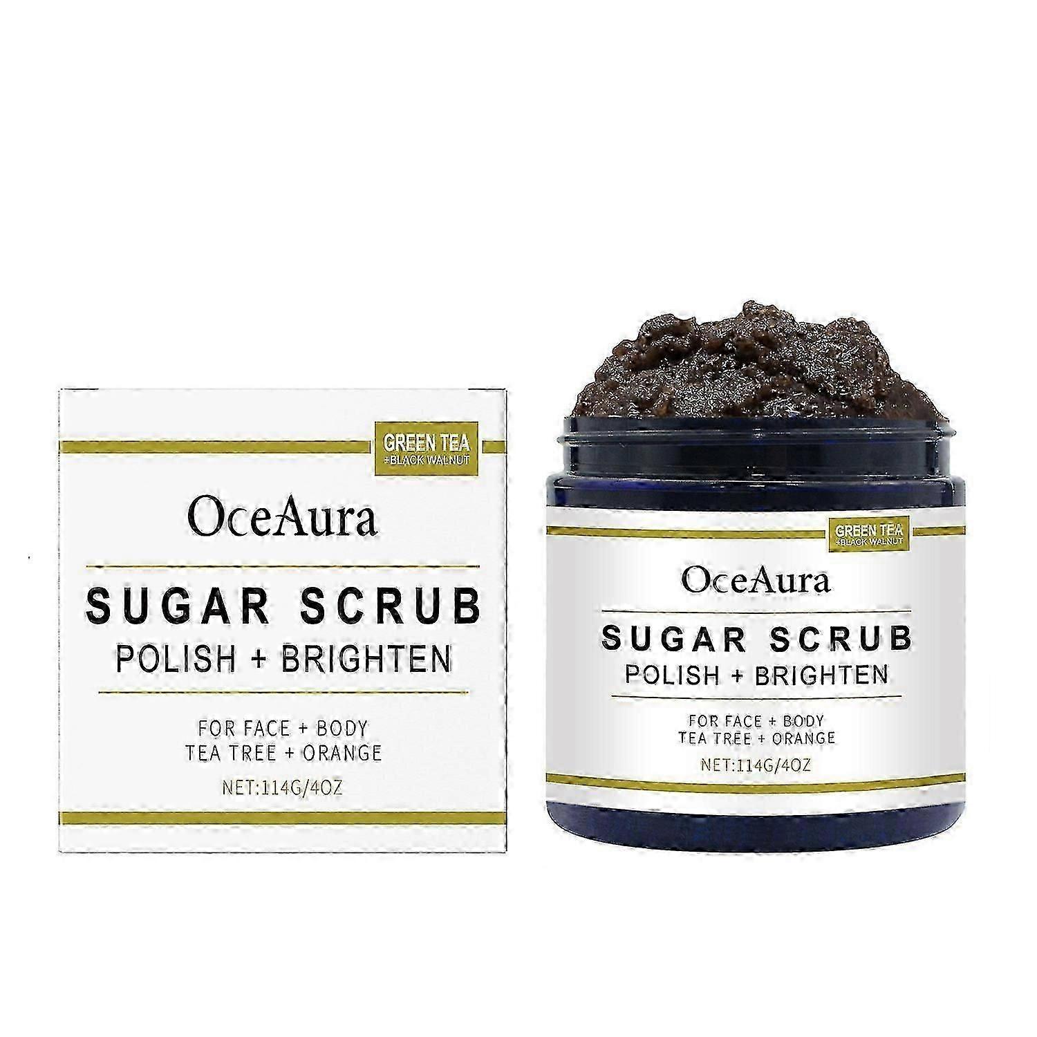 Natural Green Tea Sugar Scrub for Face, Body & Feet - Exfoliates Dead Skin, Reduces Acne & Wrinkles