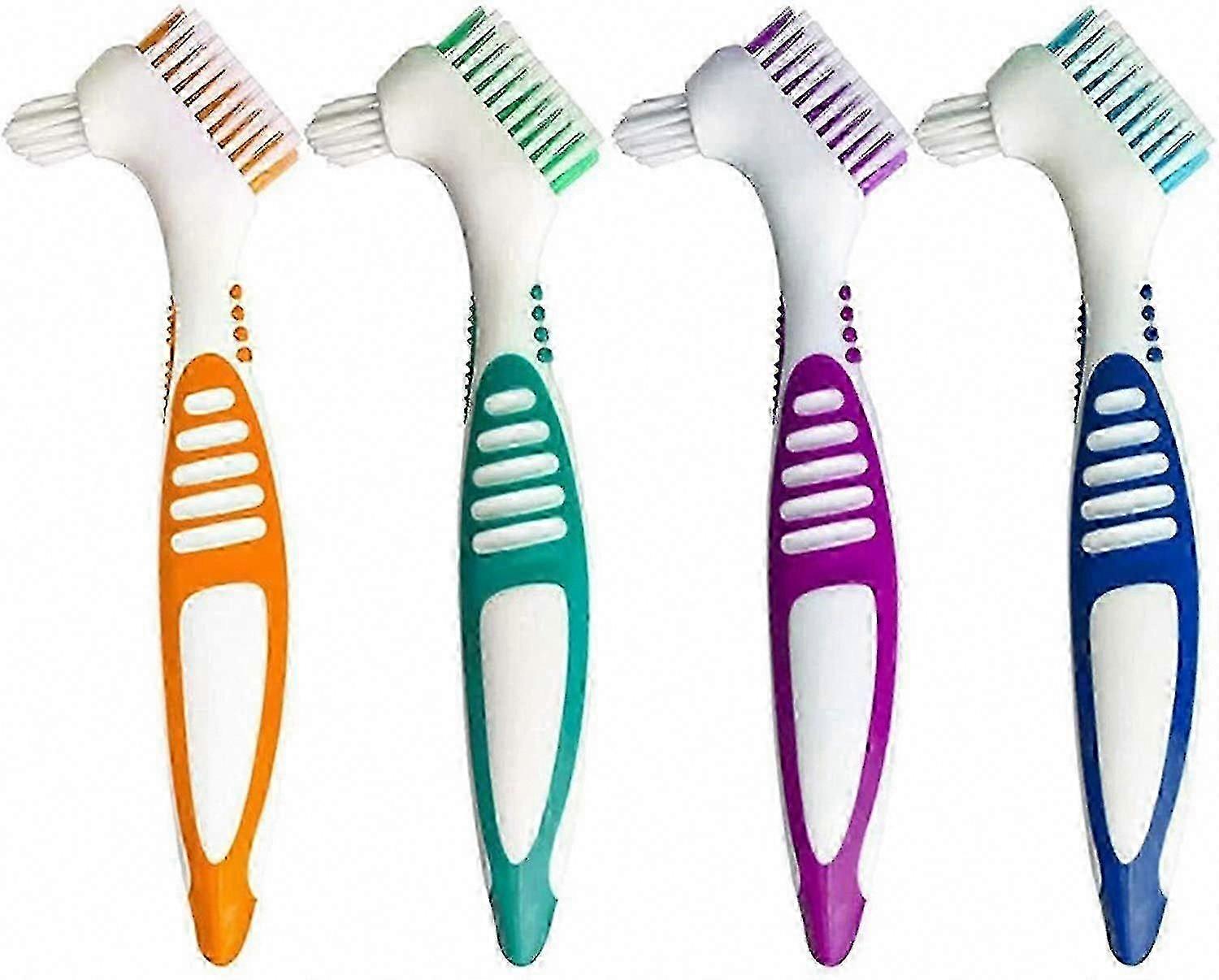 4-Pack Dual-Ended Denture Toothbrush with Hard Bristles for Effective Cleaning in UK Households