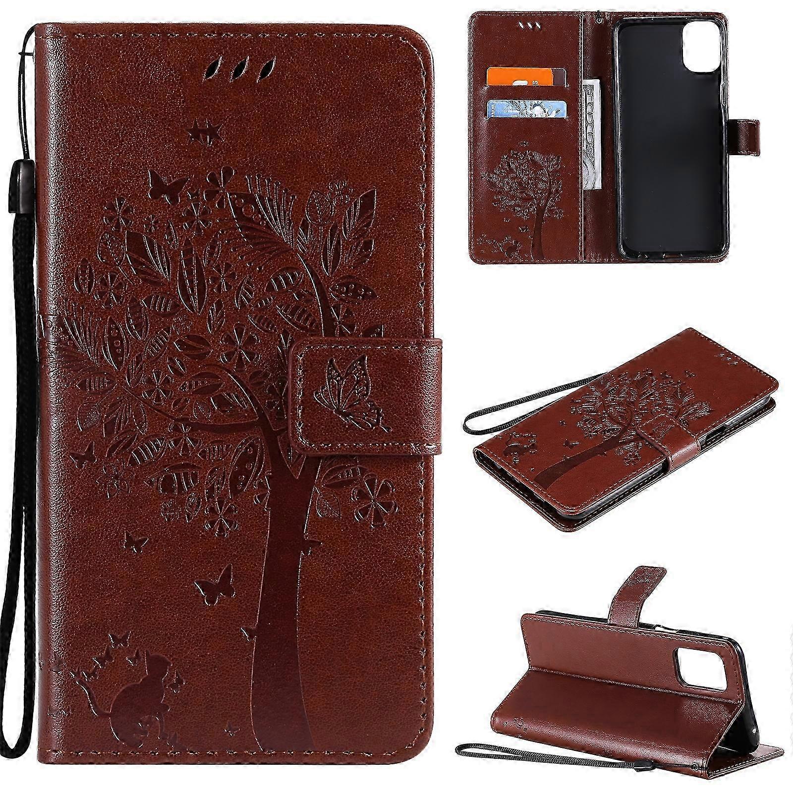 For Lg K42 Tree Cat Pattern Pressed Printing Horizontal Flip Pu Leather Case With Holder Card Slots Wallet Lanyard