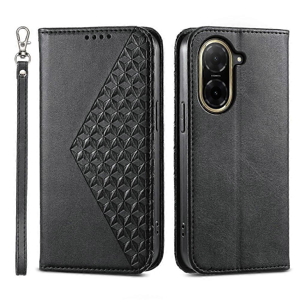 【Dual Protection Design】Made from premium calf texture PU leather combined with soft and flexible TPU material, providing enhanced protection for your phone against daily wear and tear 【Elegant and Detailed Style】Features a splicing rhombus imprinting design that adds a touch of sophistication while focusing on detailed craftsmanship 【Built-In Card and Cash Slots】Conveniently store your credit cards and cash with built-in card slots and a cash compartment, making it easy to carry your essentials 【Secure Magnetic Closure and Stand Function】Equipped with a strong magnet for automatic closing, ensuring the safety of your items, and a foldable stand for convenient hands-free viewing 【Handy Wrist Strap】Comes with a handy strap to prevent accidental falls, providing an extra layer of security and ease of carrying your phone