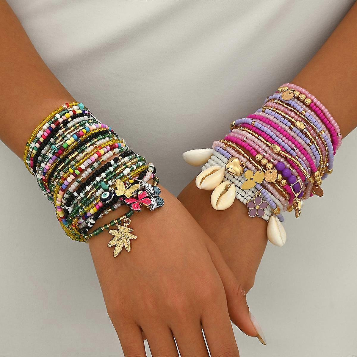 Bohemian Multi Layered Rice Bead Shell Butterfly Design Pendant Bracelets for Women Travel Souvenir Jewelry
