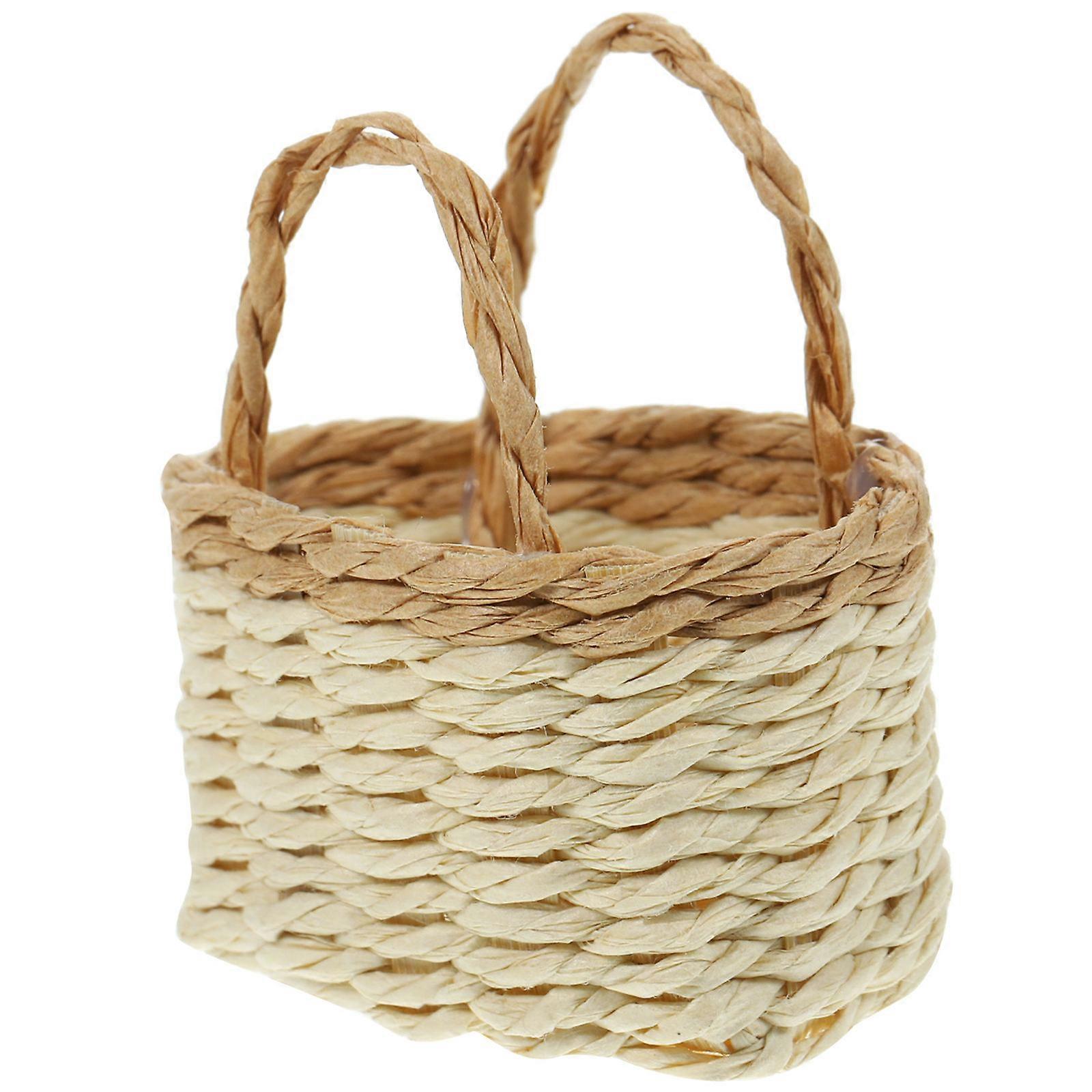 Miniature Basket Mini House Toy for Kids 2Pcs Handmade Basket Ornament