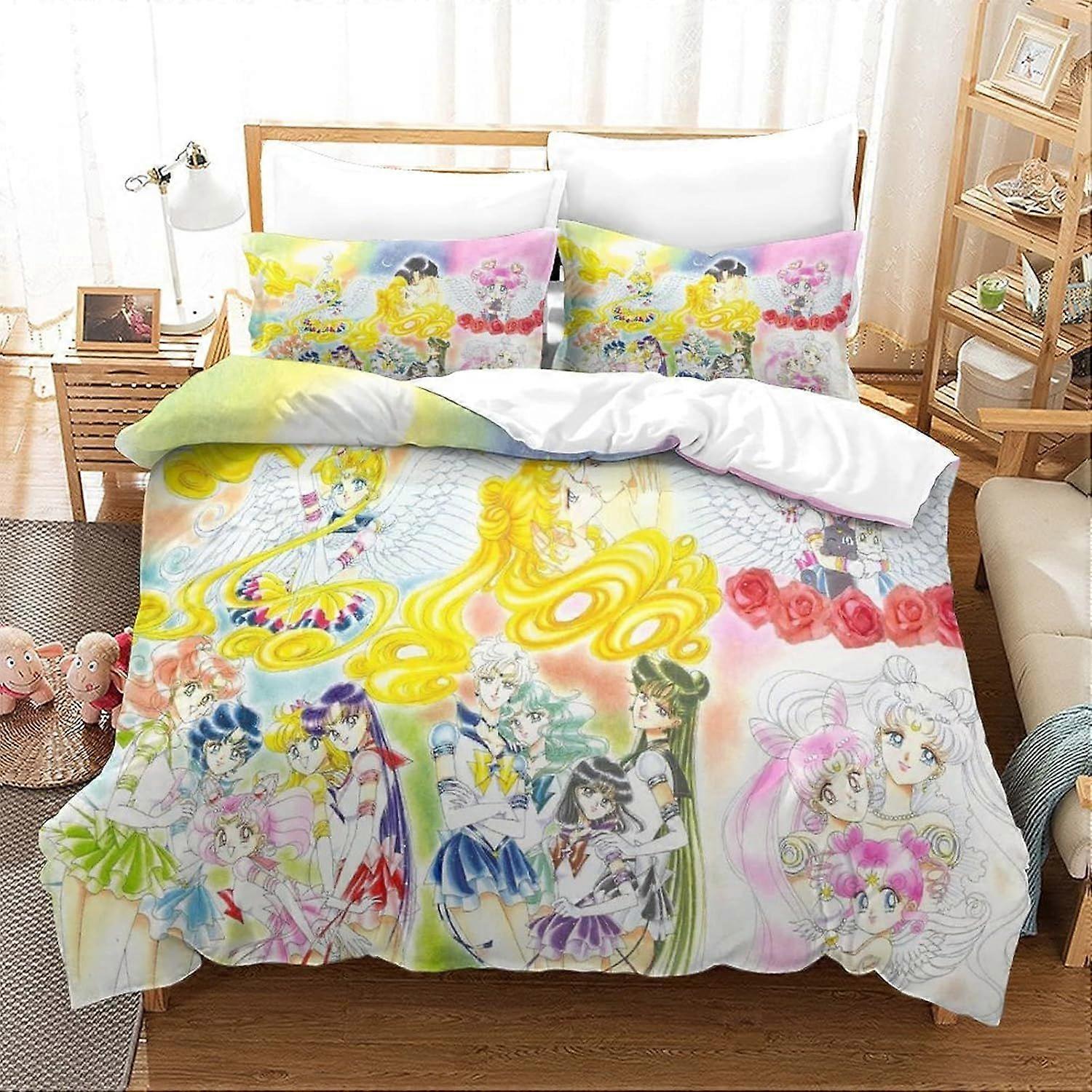 AM1124 Bedding Set Sailor Moon Duvet Cover Cartoon 3D Print Comforter Cover Soft Microfiber Quilt Cover for Kids Teenagers Adult Double200x200cm