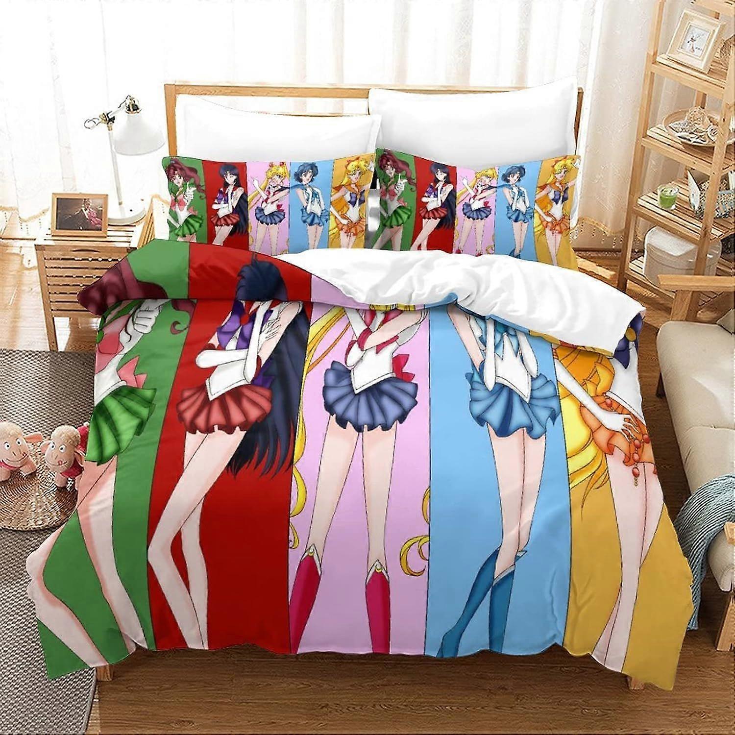 AM1139 Bedding Set Sailor Moon Duvet Cover Cartoon 3D Print Comforter Cover Soft Microfiber Quilt Cover for Kids Teenagers Adult King220x240cm