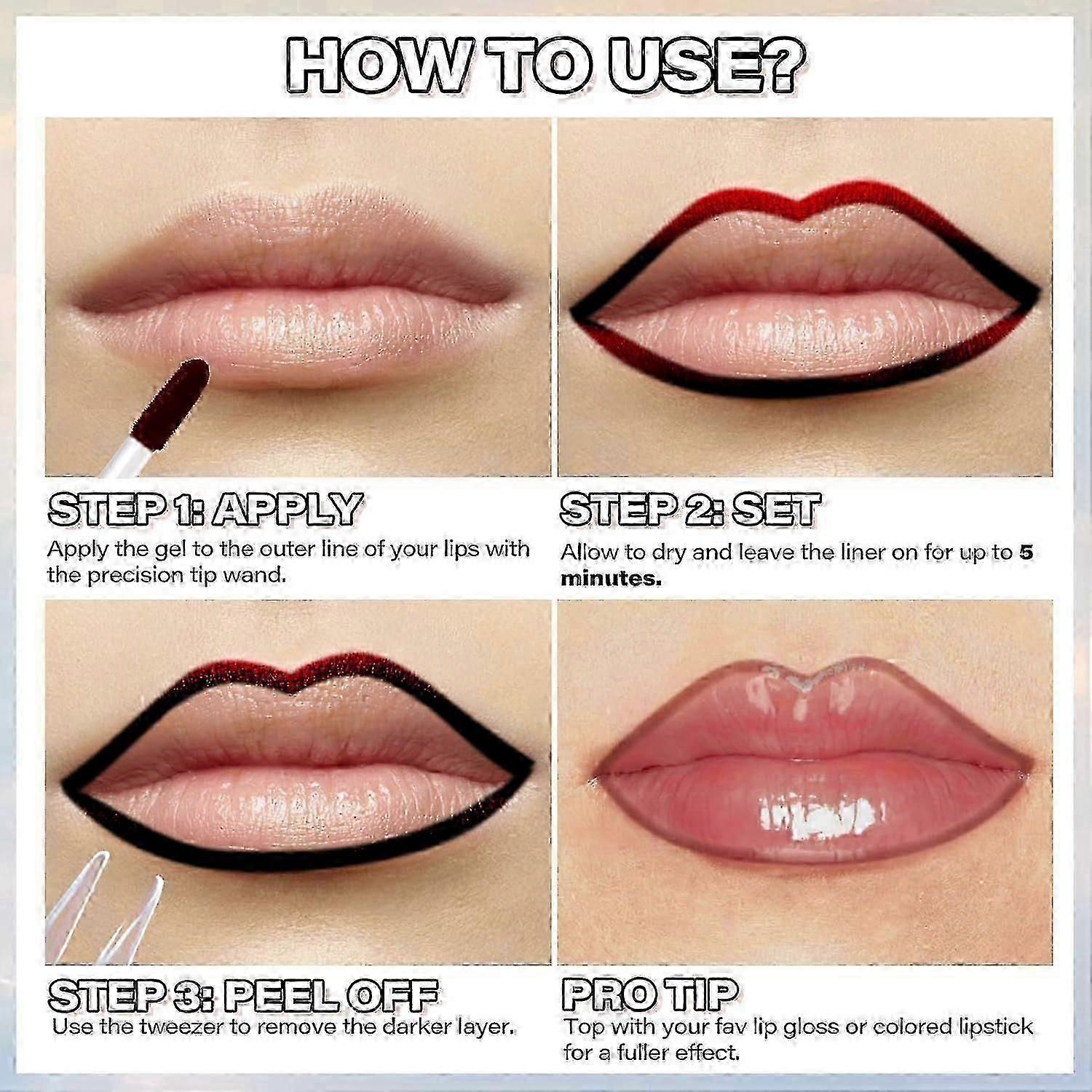 3-Piece Lip Liner Set with Peel-Off Tattoo and Stain - Long-Lasting, Waterproof, and Transfer-Proof Matte Finish