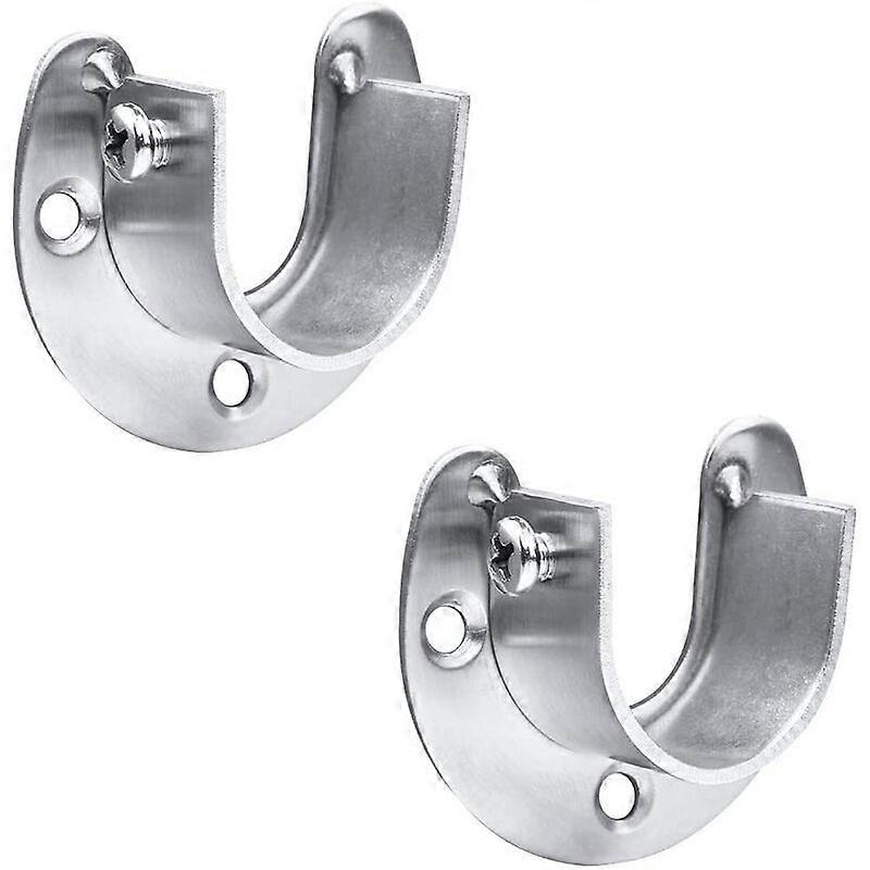 2pcs Curtain Rod Bracket #x27;Stainless Steel U-Shaped Wardrobe Tube Bracket Adjustable Wall Mounted Rail Bracket, Fits Wardrobe Rod (25.5mm)