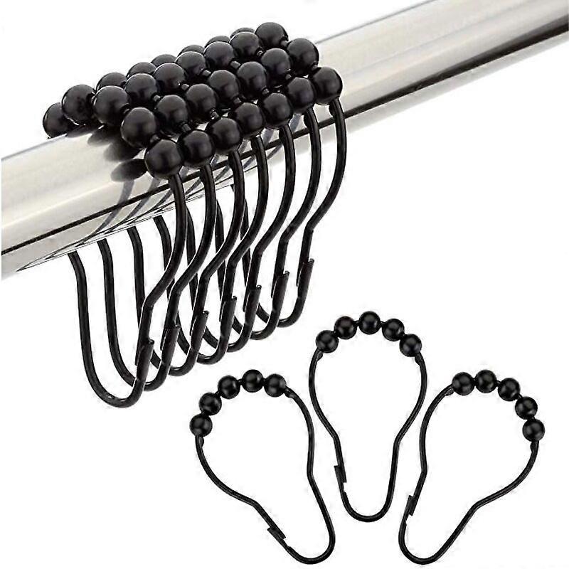 12 Pack Rustproof Stainless Steel Shower Curtain Hooks with Polished Metal Balls for Bathroom - Black