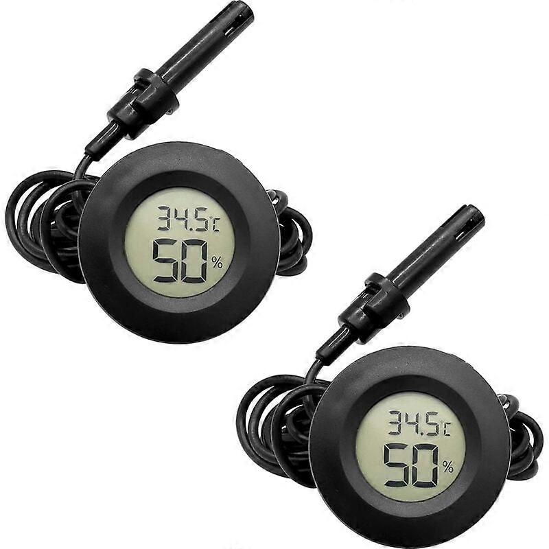 2 Pack Mini Digital Thermometer Hygrometer, LCD Display Hygrometer with Probe for Aquarium, Reptile, Turtle Cage Tank (Black)