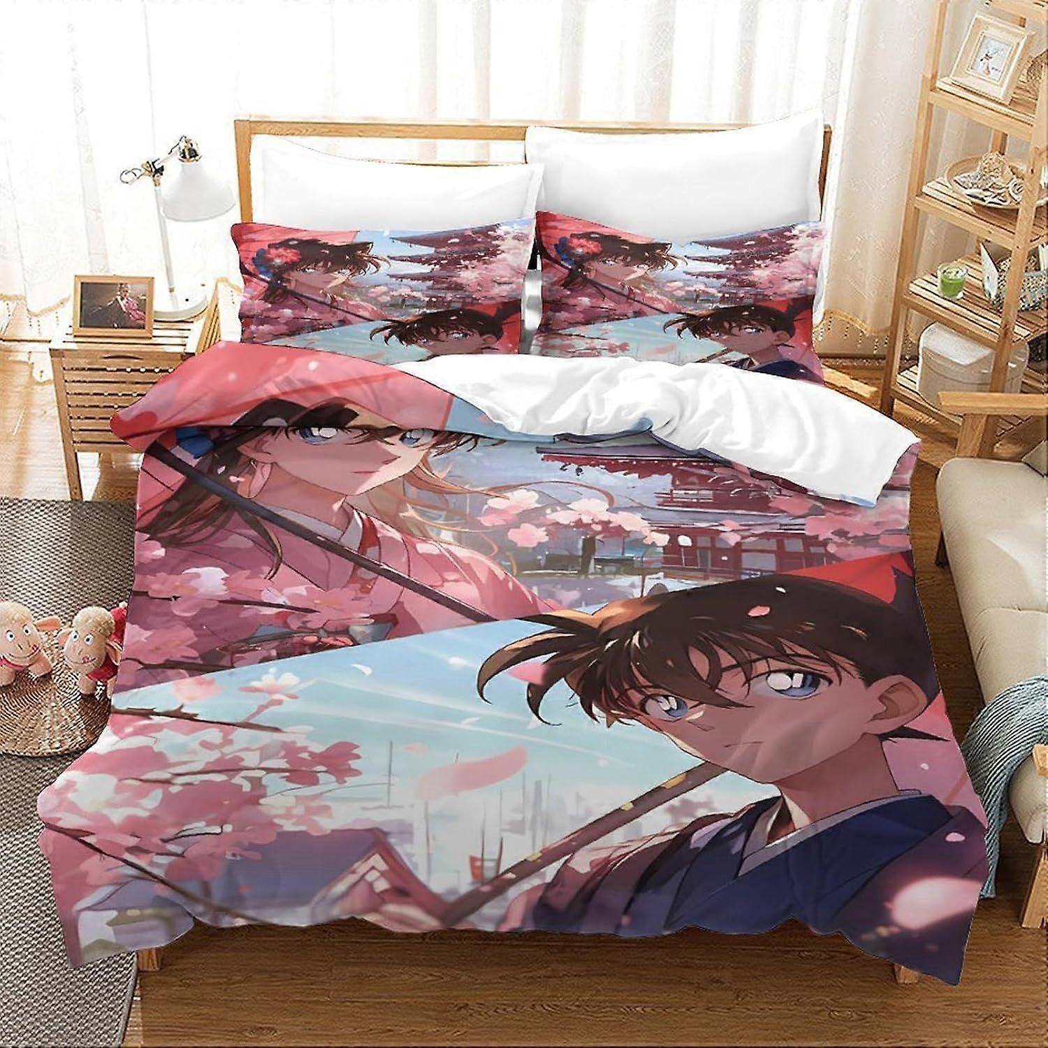 s305 Detective Conan Duvet Cover Set,Fashion Bedding Set for Boys Girls Adults,3D Printed Comforter Cover,Soft Polyester Quilt Cover,2 Pillowcases,No
