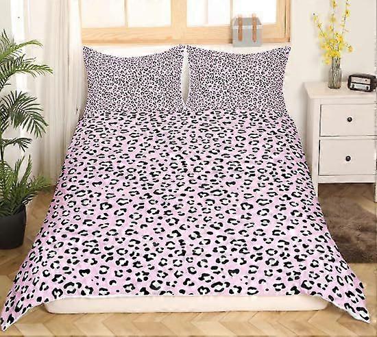 s379 Girls Leopard Print Duvet Cover Set Teens Luxury Pink Black Cheetah Print Bedding Set Double Size for Kids Children Women Bedroom Decor Chic Wild