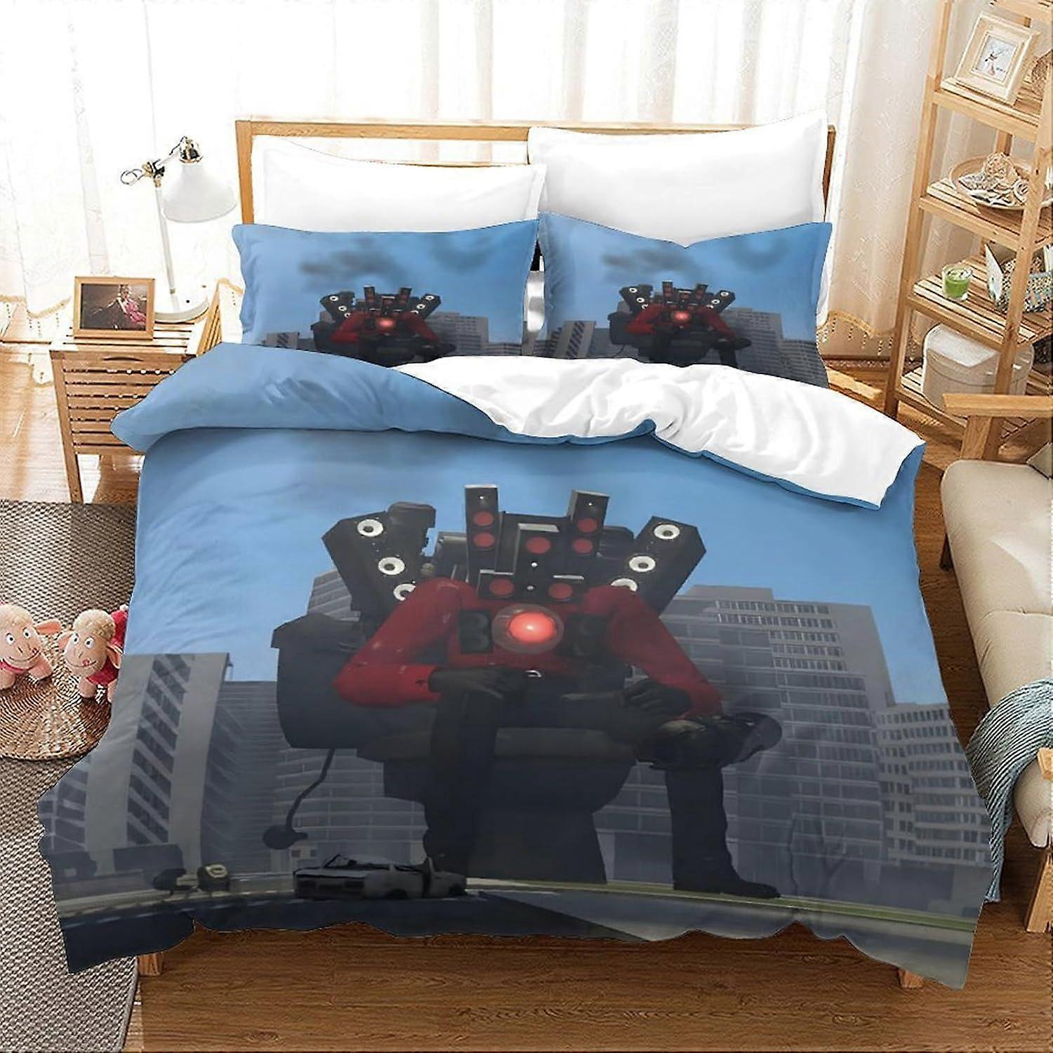 s556 Skibidi Toilet 3 Piece Comforter Set Soft Microfiber 3D Printed Quilted Bedding Set for Kids Teens Adults Room Decor,2 Pillowcases,Breathable for