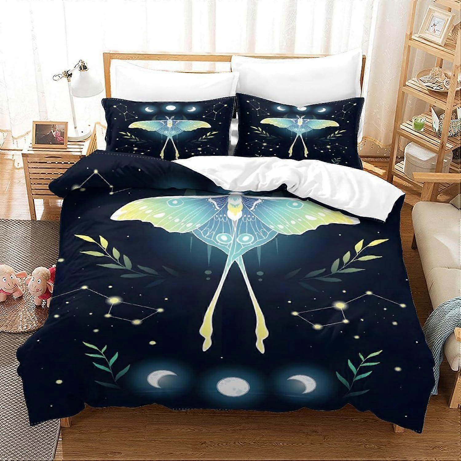 s623 Green Moon Moth Astrology Boys Bedding Set 3D Bedding Duvet Cover Set Comforter Cover Bedspread Cover Bedroom Quilt Cover Soft Microfiber 3 Piece