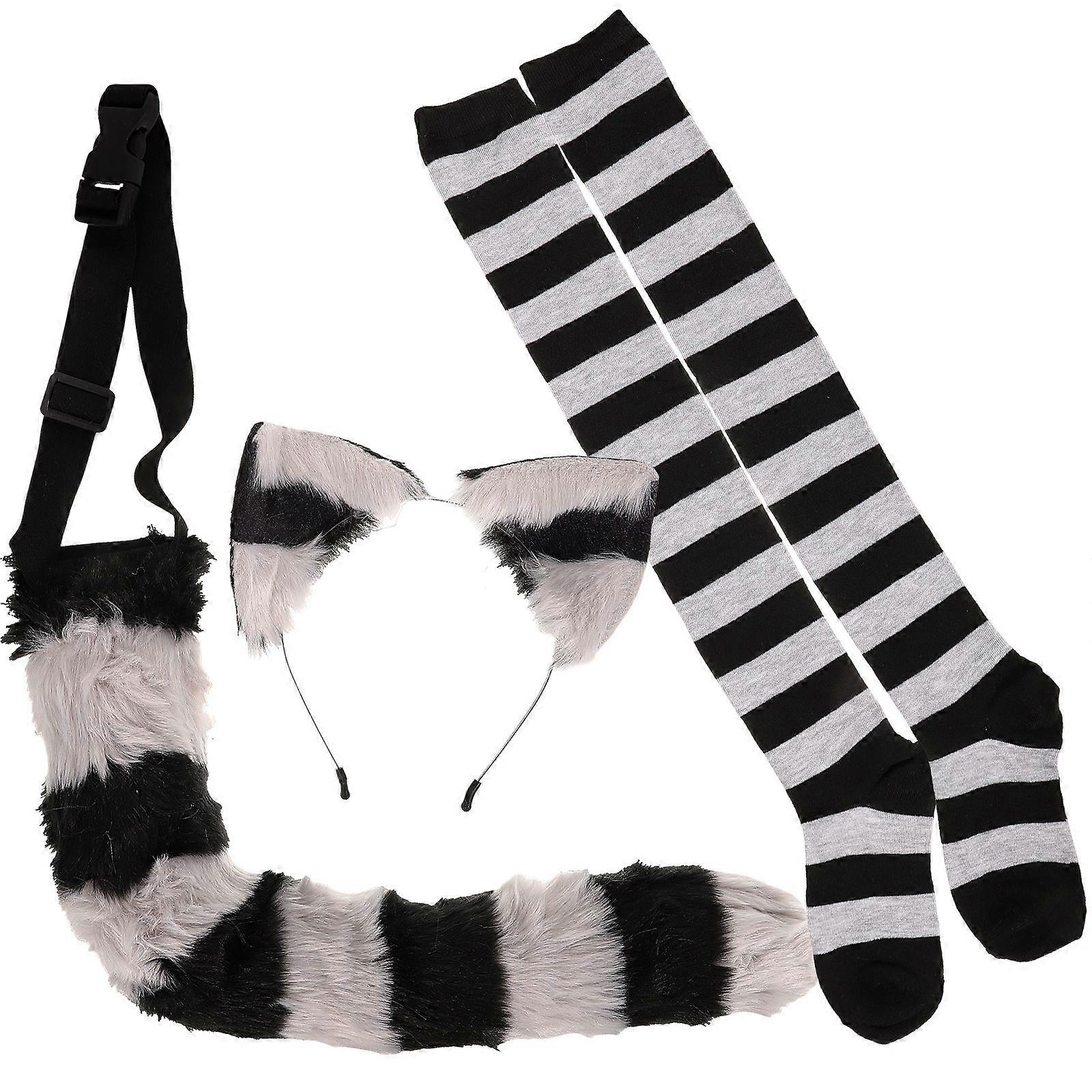 1 Set Animal Ears Headband Tail Stockings Cat Costume Accessories for Women Girls 21X17cm Multi