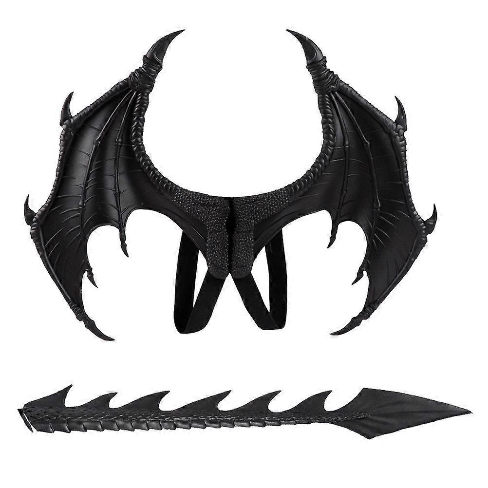 Black Dragon Wings and Tail Clothing Accessory Set Children Cosplay Costume Performing Prop Decorative Stage Props for Halloween Carnival 60.00X45.00X