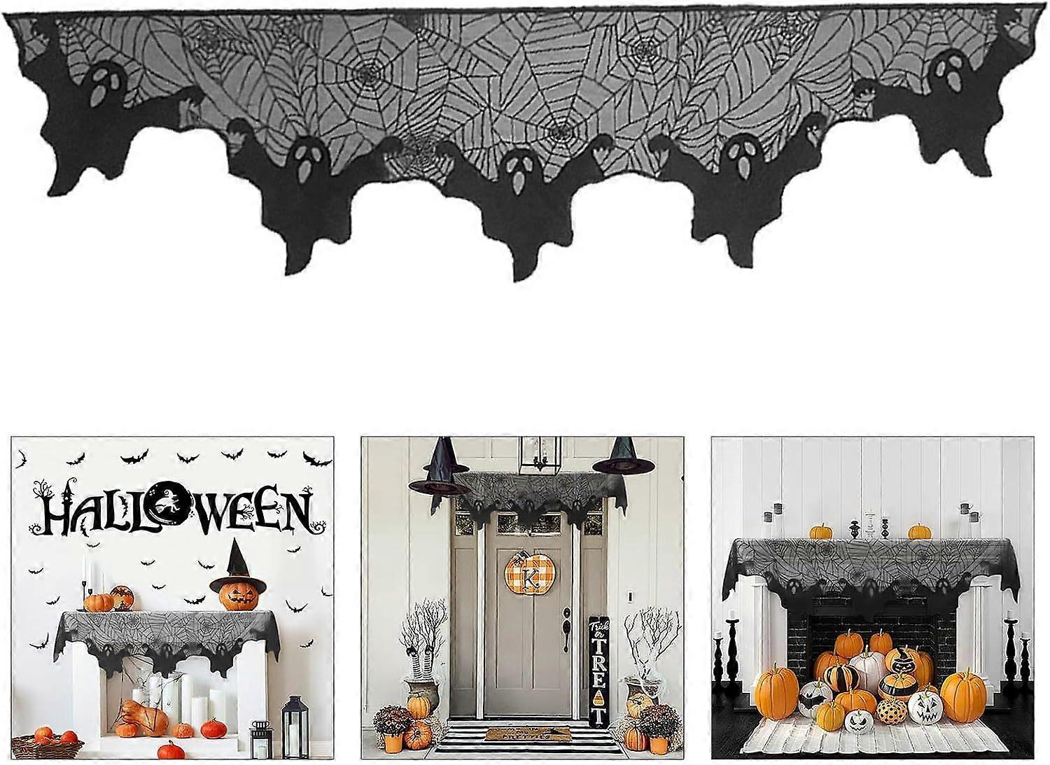 Sophisticated Halloween-themed fireplace mantel scarf with black spider web to add spooky decoration to your home Exquisite lace pattern, showing delicate craftsmanship Classic black suitable for a variety of decorative styles Soft and comfortable, not easy to fade, and easy to remove for storage Widely used to decorate Halloween parties, dances and other places