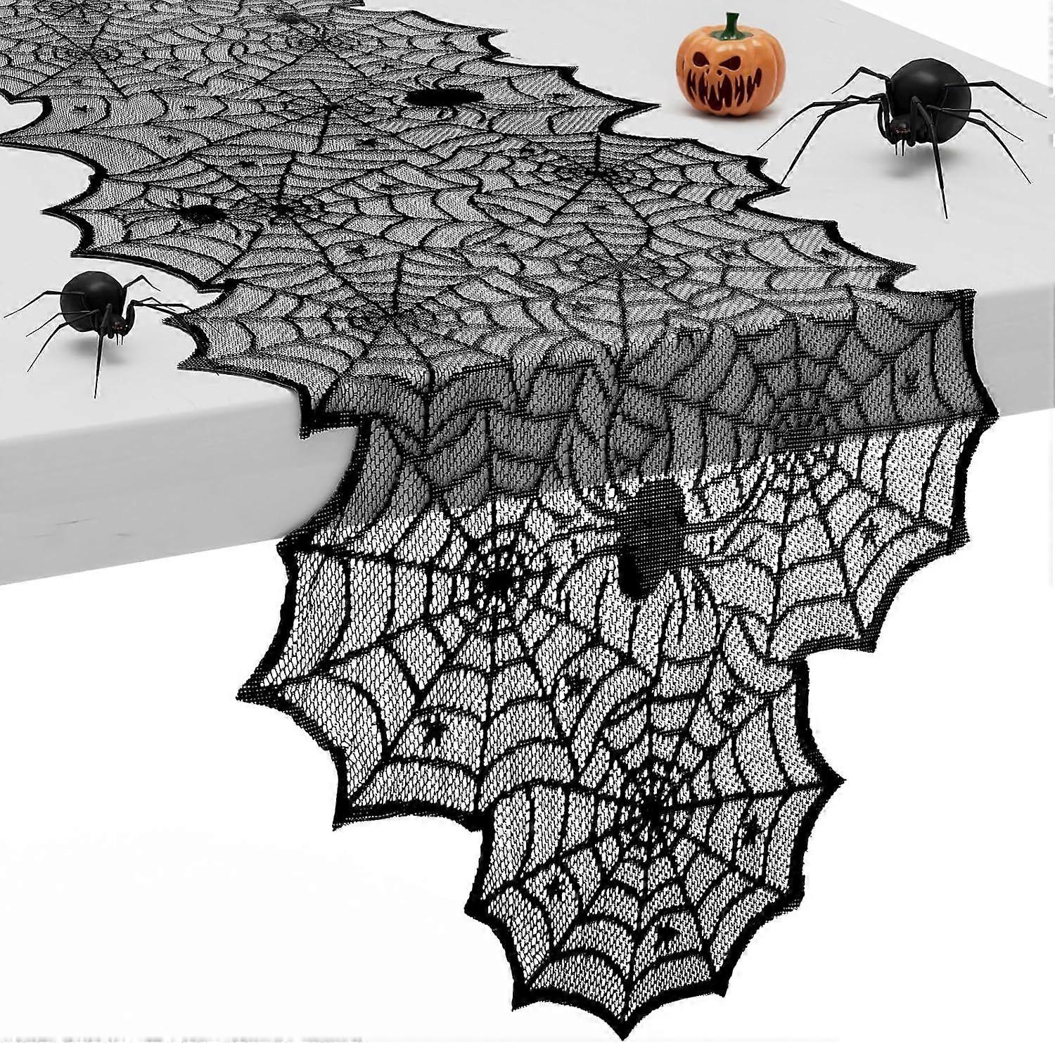 Halloween Table Runner,72 Inches Long Black Lace Spider Web Table Runners for Halloween Table Decoration/Party Dinner Table Decor,Kitchen,Mantel,Bedro