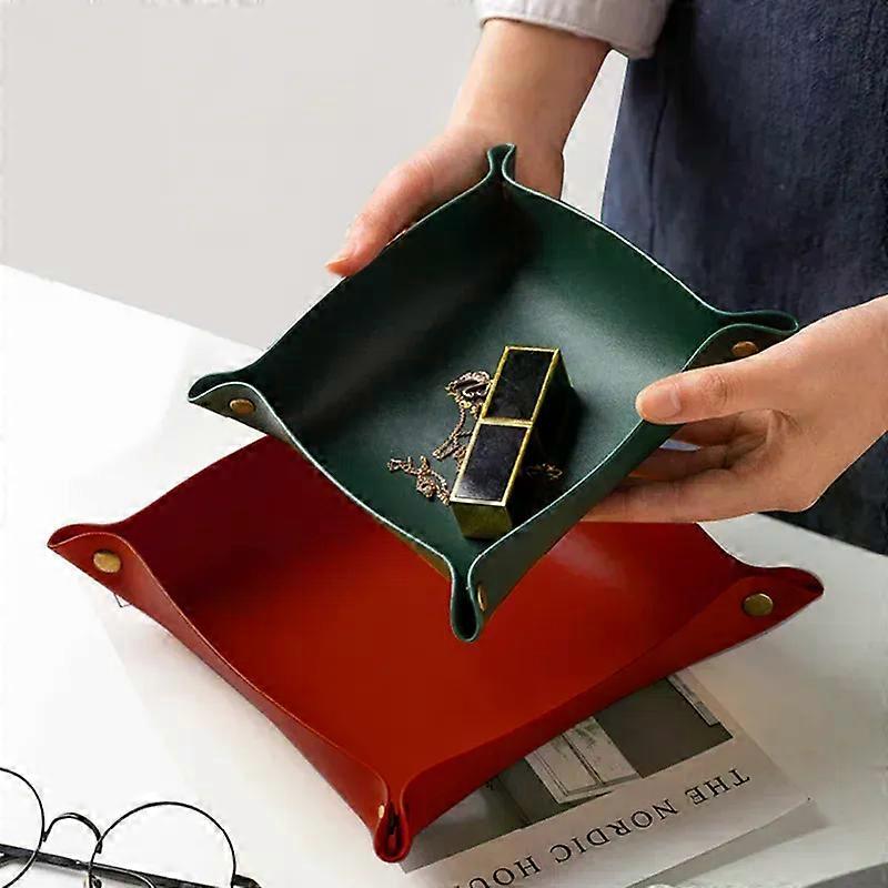 Leather Storage Tray Dice Box Coin Desktop Jewelry Box Makeup Key Tray DIY Household Folding Tray Storage Case