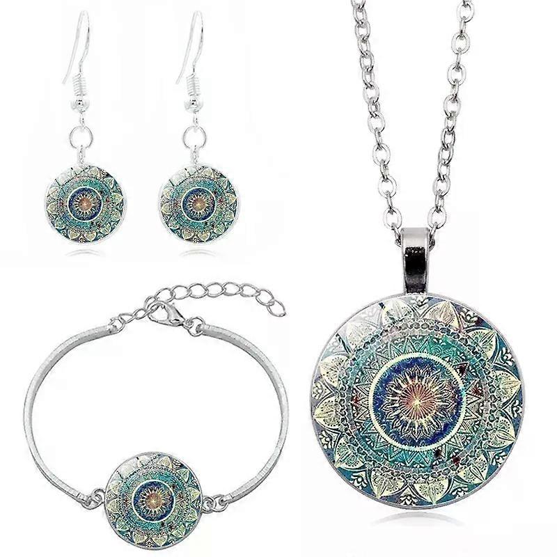 Earrings 1 Set Charm Mandala Art Earrings Necklace Om Symbol Zen Buddhism for Women Earrings Jewellery