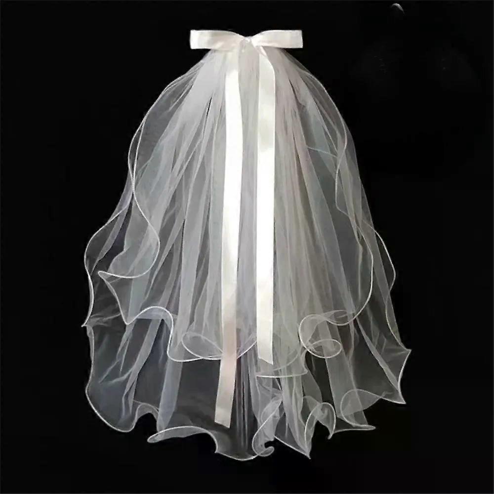 New Two Layer Bridal Veil Lace Edge White Wedding Veil Short Simple Women s Tulle Wedding Accessories Photo Veil