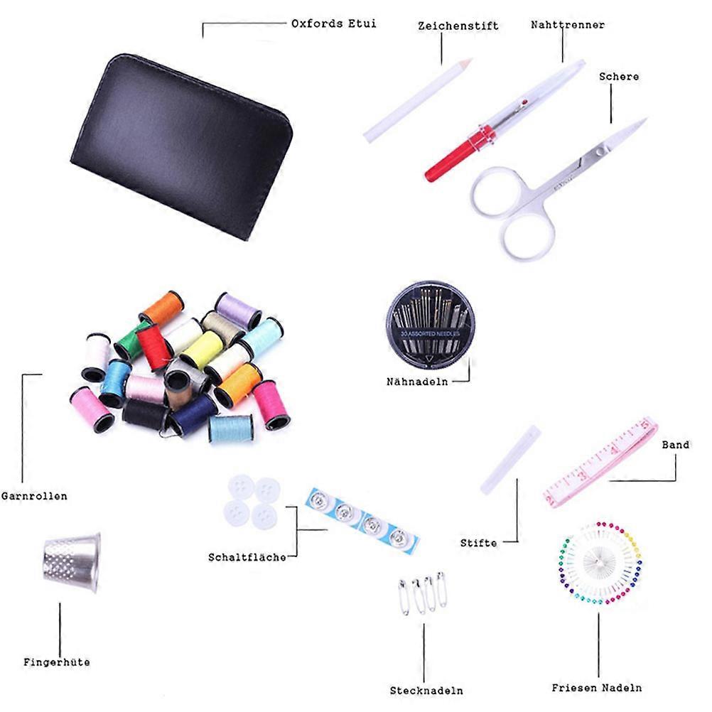This sewing kit is an excellent home necessity, made of top-class material with delicate workmanship, sturdy and durable. Perfect for holding sewing accessories. It is helpful to save space and keep your sewing accessories organized. Features - Color: Black. - Material: PU. - Size: Approx. 16.8 0.8x2.5 (LxWxH). - A sewing kit contains coilX38, plate , pearl needle plate , tape measure , , X4 buttons, scissors, tape machine , brush , ear dig , plastic threading machine , crochet , metal thimble , white buttons X4, needle X4, large pin, pin storage case (5 pin) - Made of top-class material with delicate workmanship, sturdy and durable. - Premium, compact sewing kit is perfect for everyday, travel or fixes. - Store it in your desk drawer, purse, car, RV or suitcase ready for any . Package list: 134 x sewing kit