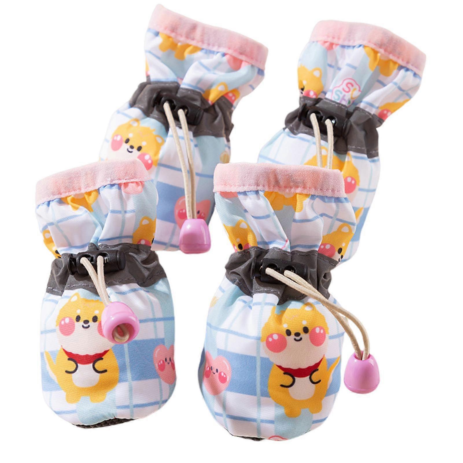 4Pcs Pet Shoes Anti-Slip Protect Paws Soft Lining Windproof Drawstring Design Comfortable to Wear Anti-Dirty Small Dog Teddy Shoes
