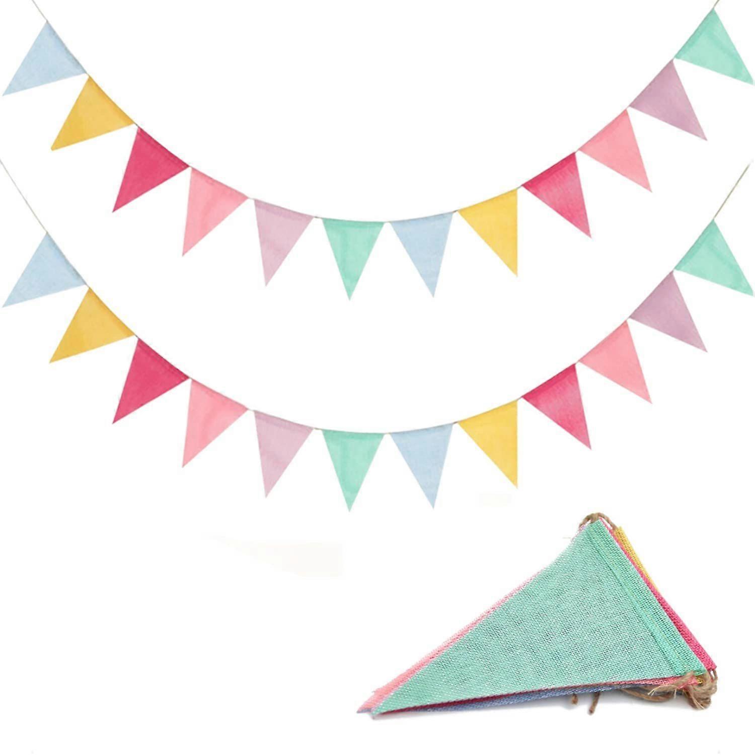 26ft/8m Bunting Banner, 2 Strip Multicolor Outdoor Waterproof Triangle Flags Imitated Linen Burlap Supply for Wedding Birthday Spring Easter Party