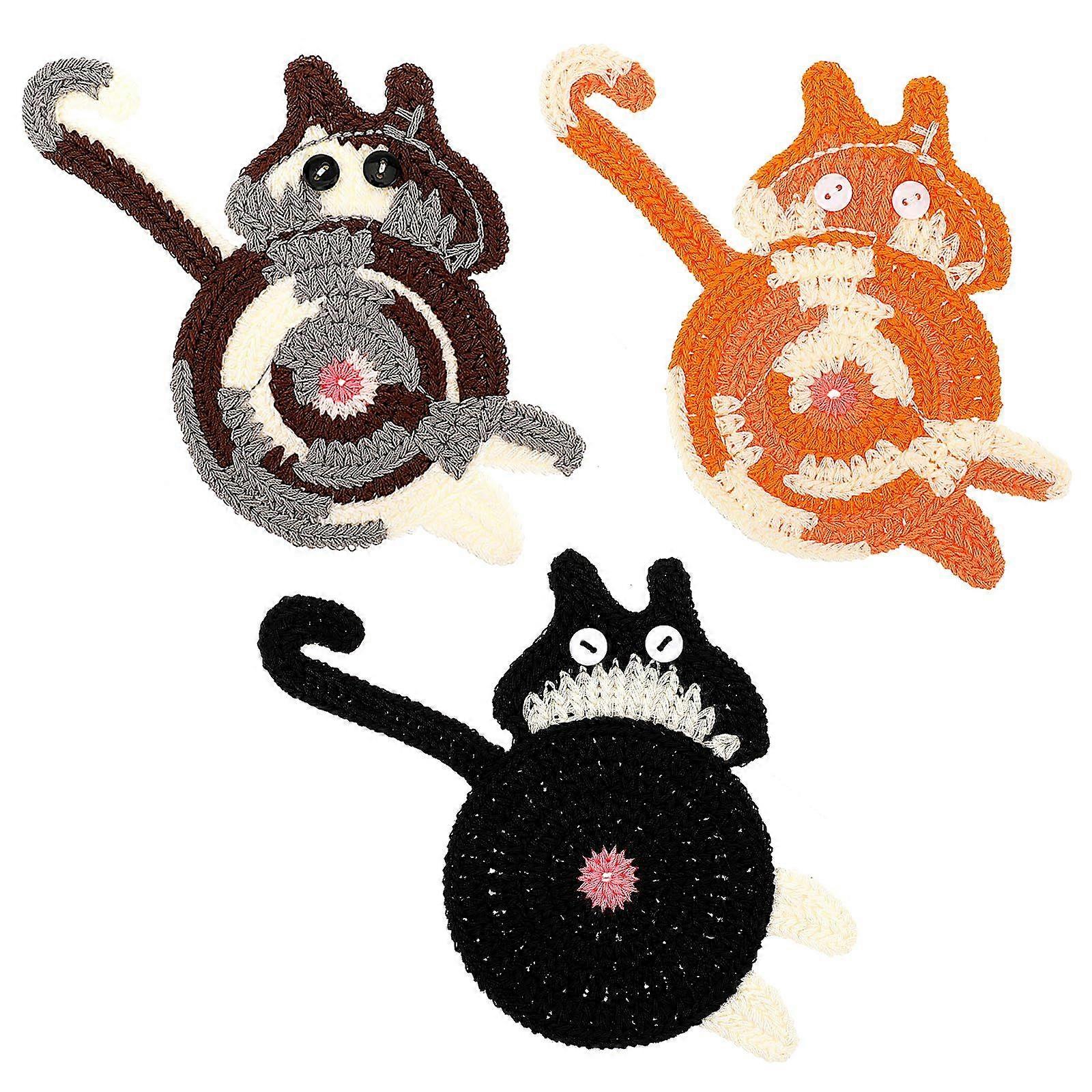 3pcs Cute Cat Coasters Crochet Insulated Coasters Creative Knitted Woven Fun Coasters Gifts for Cat Lovers Office Home Desktop Protection Decoration