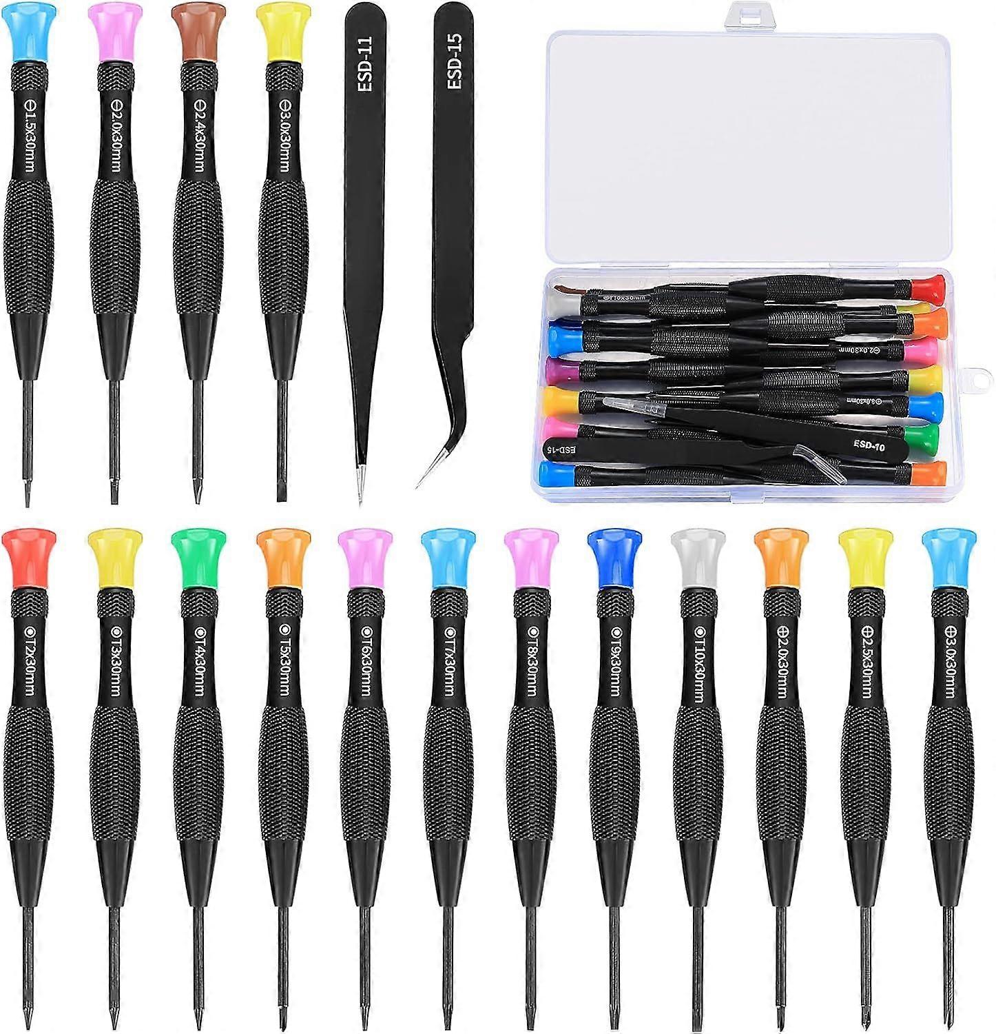 18 Pcs Torx Screwdriver Set, Mini Small Magnetic Torx Flat Phillips Head Screwdrivers Tweezers Repair Kit for Eyeglass Computer Phone Electronics