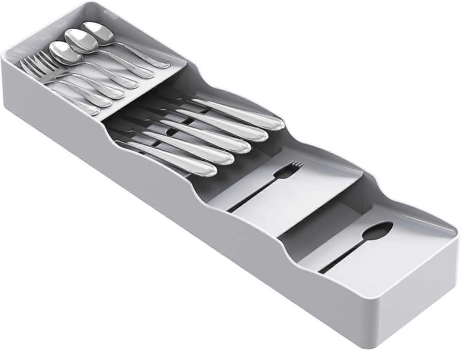 Cutlery Drawer Organiser, Small Cutlery Tray for Kitchen, Plastic Narrow Utensil Silverware Holder for Spoons, Forks and Knives, Flatware Stor
