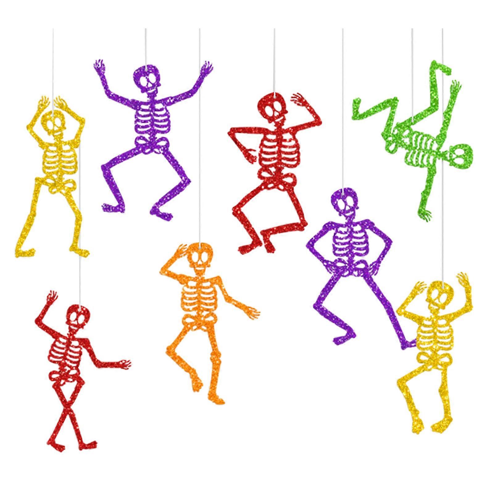 8 Pcs Colorful Hanging Skeleton Decoration Glitter Paper Skeleton Bunting Banner Backdrop for Indoor Outdoor Halloween Party Decor