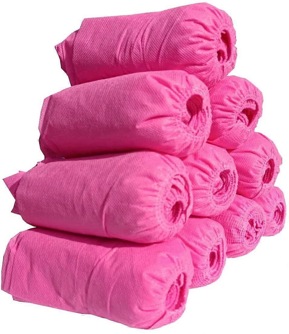 Shoe Covers Disposable 100 Pack (50 Pairs) Non-slip Waterproof Boot Cover Disposable Non Woven Fabric for Indoor Outdoor (100 Pack, 03 Pink)