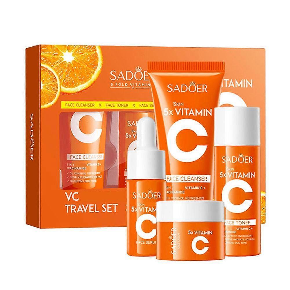 Vitamin C Brightening Travel Pack All-in-One Cleanser Toner Essence Cream for Glowing Skin