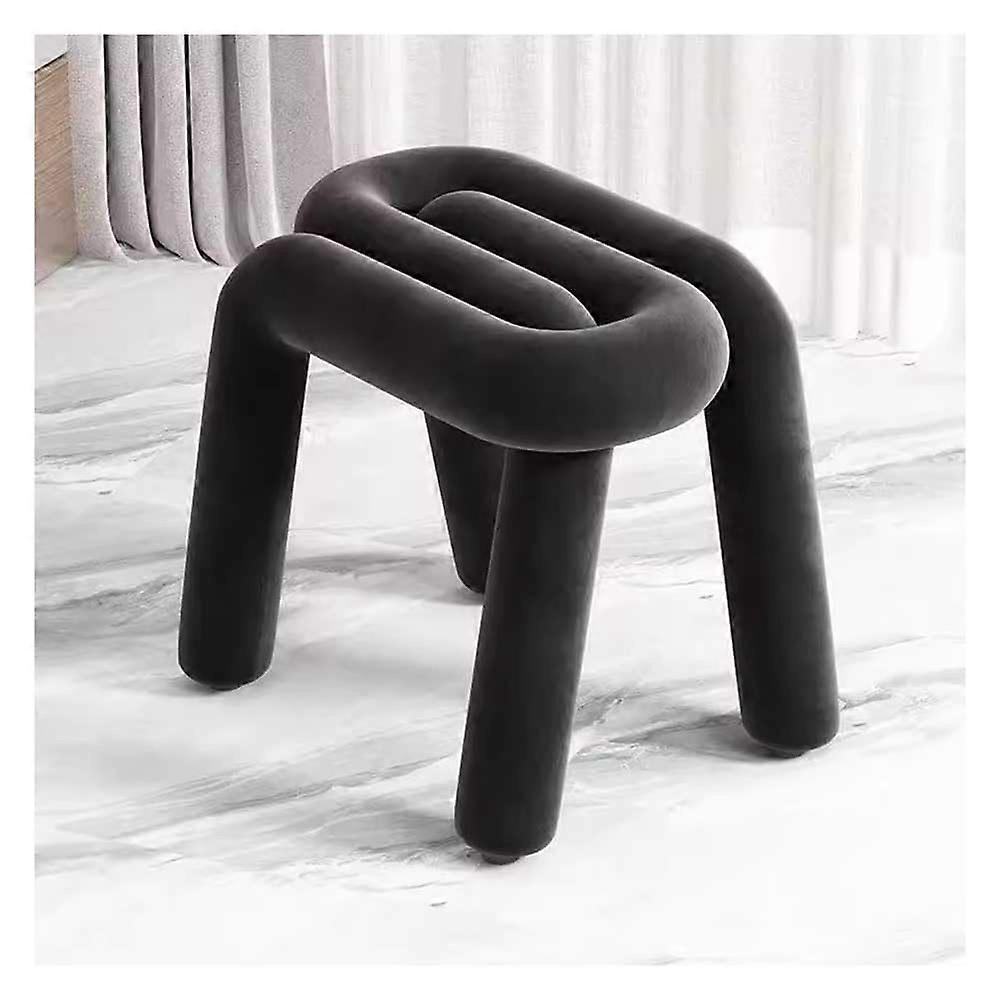 Backless Vanity Stool Black Padded Makeup Pouf, Vanity Chair For Dressing Table, Makeup Room, Balcony, Living Room